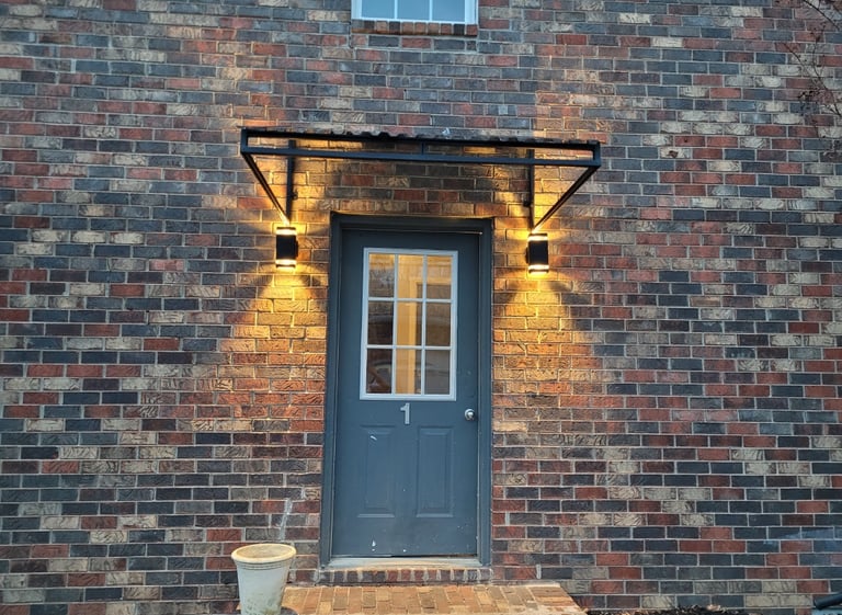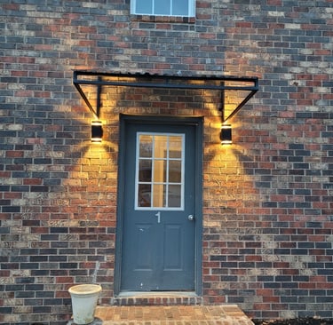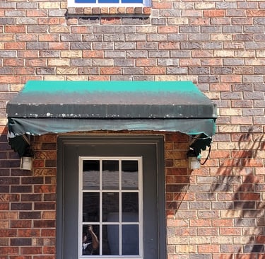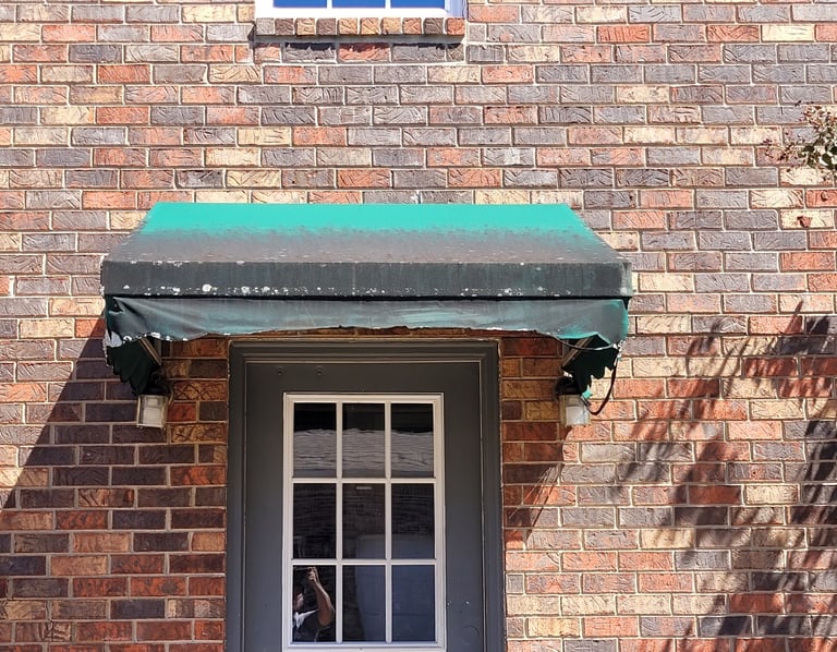 Customer wanted to update the awnings, but didn't want to spend big money to do so. We reused the frame and gave it an updated look with cost effective materials. We also added new lighting.
